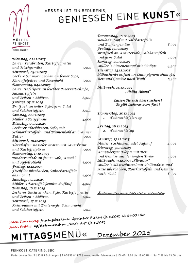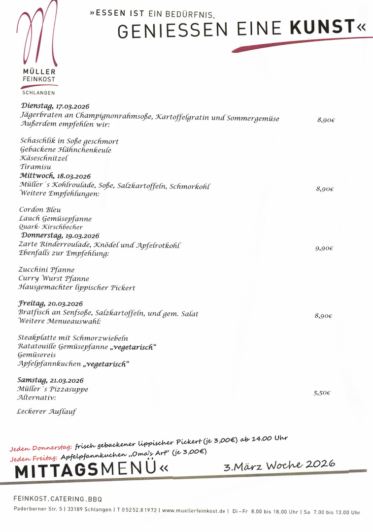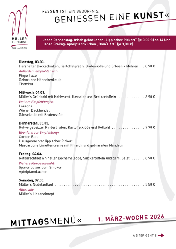 Diese Woche gibt es bei uns frisch für Sie gekocht: